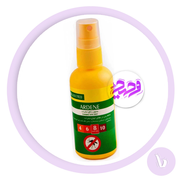 - محلول دافع حشرات آردن، اثر طولانی و ماندگاری 8 ساعته، مقاوم در برابر تعریق