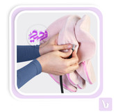 - وسیله را طوری دور گردن قرار دهید که قسمت باز حلقههای تیوب، در قسمت جلو و زیر چانه قرار گیرد